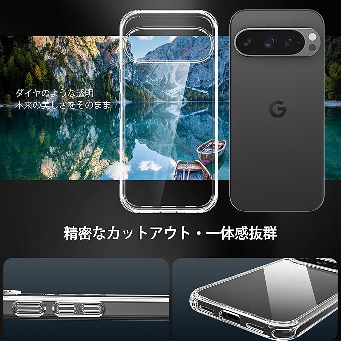 【水晶のような透明感と超高耐衝撃性】透き通って高い透明度を誇り、背面がpixel10 pro xlのカラーや質感をそのまま映え、高級感が溢れて、すごくかっこよくてこのクリア感にいつまでも見惚れてしまいます。米国国防総省の耐衝撃試験「MIL-STD-810G」に認証済み、耐衝撃性能は20倍アップ。ピクセル10Pro XLを全方向からしっかりと保護できす。