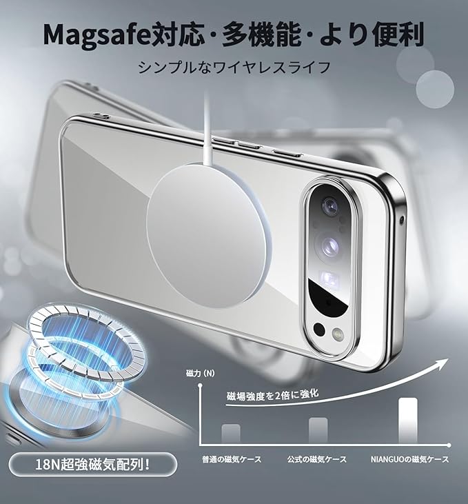 【金属光沢・CDリング・Magsafe対応】NIANGUO Google Pixel 10/10 Pro 用 ケース クリア ストラップホール付き フィット感 黄ばみなし カメラ保護 ソフト ワイヤレス充電対応 マグネット内蔵 耐衝撃 耐久性 メッキ加工 軽量 マグセーフ対応 スマホケース グーグル ピクセル 10・10プロ カバー 6.3インチ(シルバー)