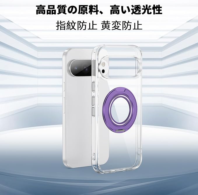Jajaful 対応 Google Pixel 10/10 Pro 用 ケース クリア Magsafe対応 360 回転スタンド 車載ホルダー 対応 指紋防止 黄変防止 耐衝撃 米軍MIL規格 SGS認証 ピクセル10カバー ピクセル10Pro 携帯ケース ぐーくるぴくせる10 携帯カバー ワイヤレス充電対応 スマホケース ストラップ穴付き 軽量 透明 PC+TPU パープル