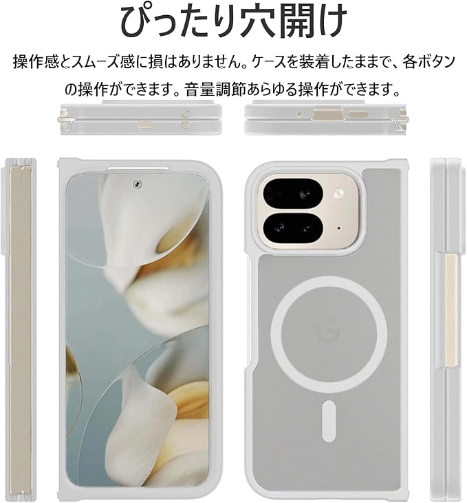 【ぴったり穴開け】Pixel 10 Pro foldとぴったりフィットします。Pixel 10 Pro foldの操作はそのまま出来、とても便利です。操作感とスムーズ感に損はありません。ケースを装着したままで、各ボタンの操作ができます。音量調節あらゆる操作ができます。