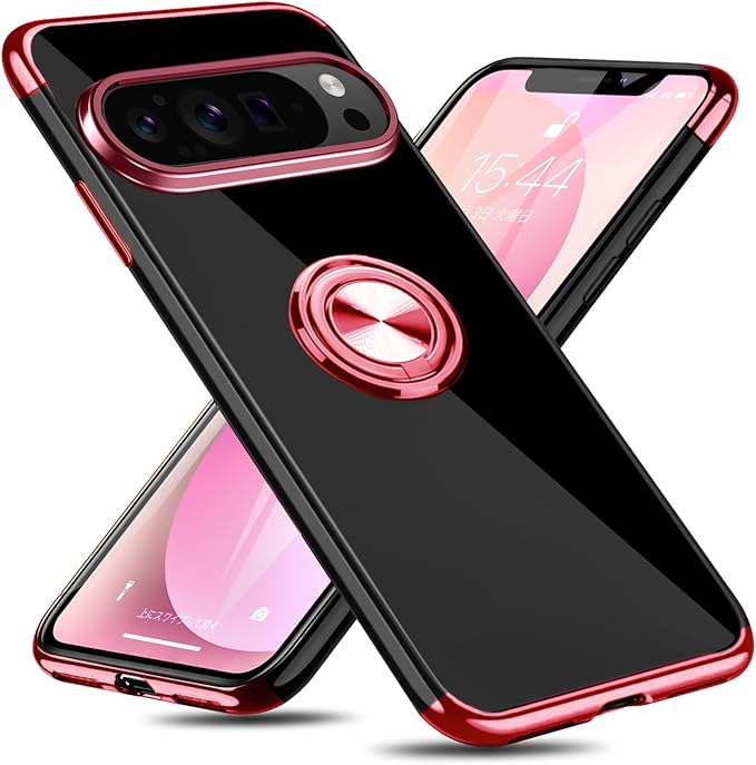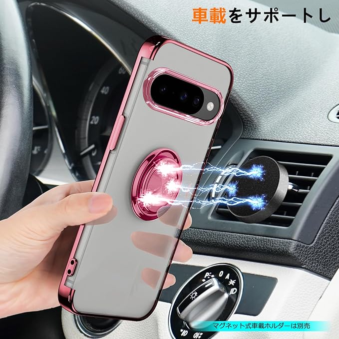 QOUNVYW 対応 Google Pixel 10 用 ケース Pixel 10 Pro 用 ケース リング付き クリア 耐衝撃 スタンド機能 透明 TPU 車載ホルダー対応 落下防止 防塵 薄型 軽量 一体型 変形防止 保護カバー ピクセル 10/ピクセル 10 Pro 用 カバー ピンク W-YXZH-86-05