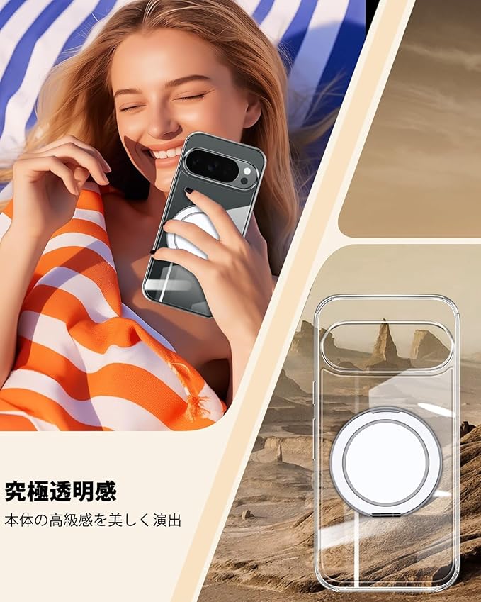 Pixel 10 / 10 Pro ケース クリア リング付き 360 回転スタンド MagSafe対応 ワイアレス充電対応 耐衝撃 ピクセル 10 / ピクセル 10pro カバー 薄型 軽量 人気 pixel 10 / pixel 10 pro スマホケース 透明 PC 車載ホルダー対応 (クリア)