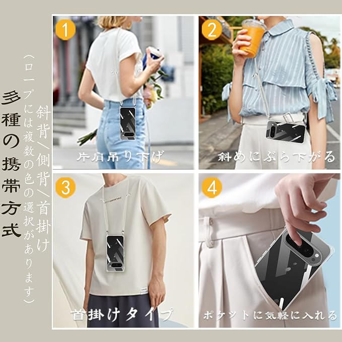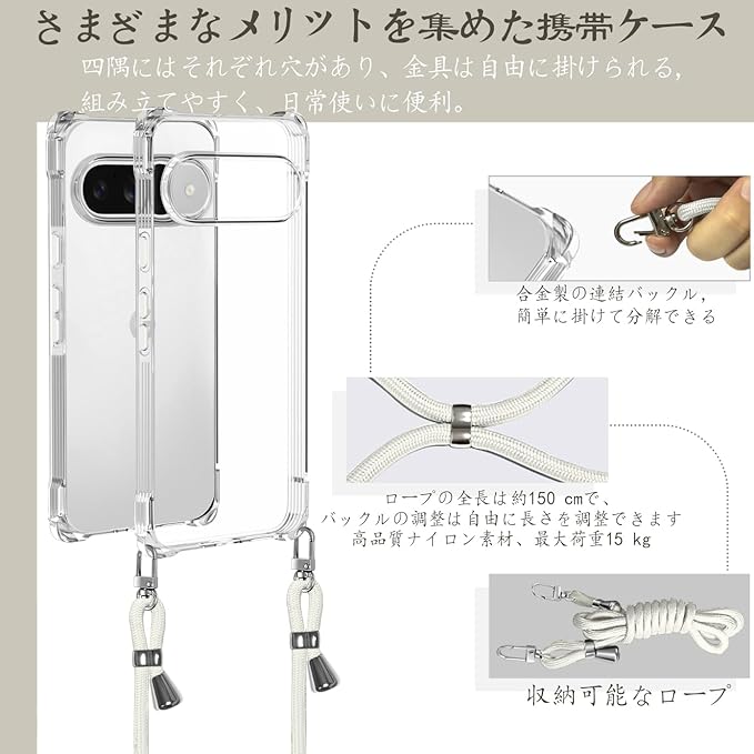 Google Pixel 10 / Google Pixel 10 Pro ケース クリア ショルダー 耐衝撃 ピクセル10 / ピクセル10 Pro カバー スマホケース 透明 織りストラップ付き 肩がけ 首掛け 紐付き 縄掛け 斜めがけ ファッションデザイン TPUスマホ 柔軟 軽 薄 (ホワイト)