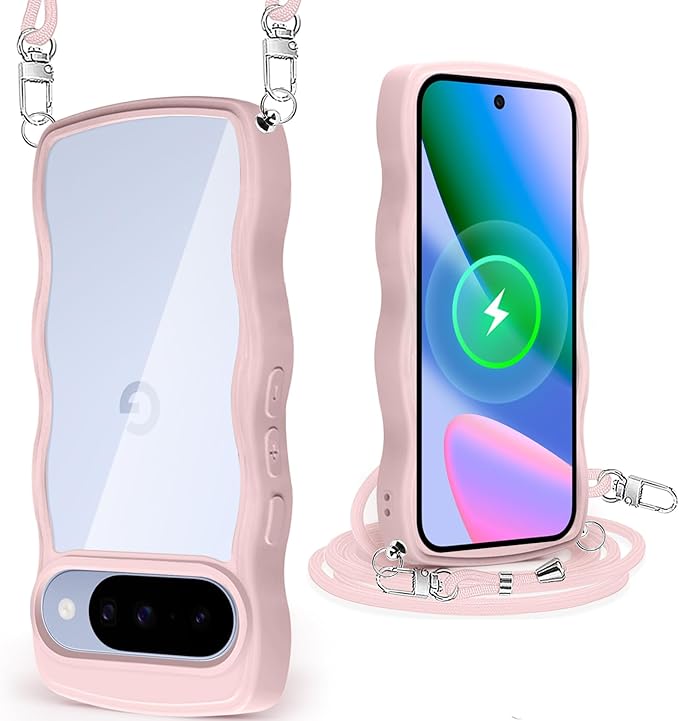 Google Pixel 10 / Pixel 10 Pro 用 ケース クリア ショルダー グーグル ピクセル 10/10Pro カバー 透明 かわいい 耐衝撃 スマホケース ストラップ付き 取り外し可能 長さ調整可能 首かけ 肩掛け 薄型 軽量 TPU ワイヤレス充電対応(ピンク)