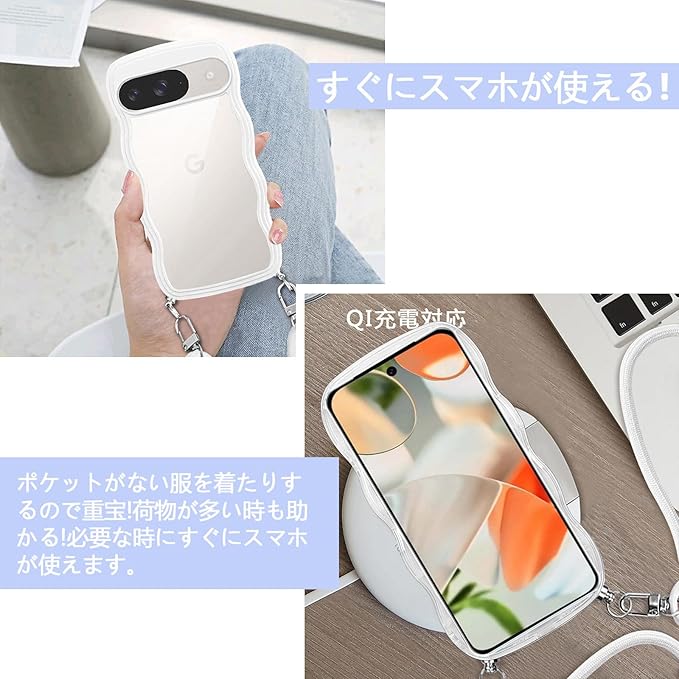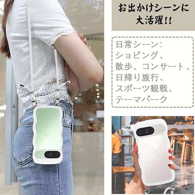 Google Pixel 10/pixel10 Pro 用の ケース ショルダー クリア グーグル ピクセル10/10pro スマホケース 透明 TPU カバー ストラップ付き 肩掛け 首掛け 紐付き 斜めがけ 創意 個性 可愛い かわいい 韓国 耐衝撃(ホワイト)