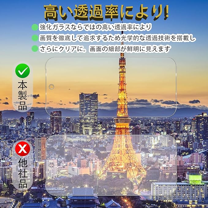 【指紋防止】保護フィルムには疎油性コーティングが施されているので、スマホ表面には指紋が付きにくくなり、清潔でクリアな状態を維持できます。油弾く効果が優れて、水滴が球状に保たれます。光の透過率が99%で、透明度が普通の ガラスよりも高くて、元々の画質が損なわれません