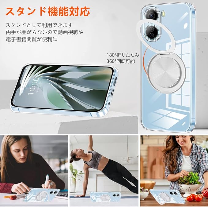 【リング付き スタンド機能】後ろで嵌め込み式リング付き、車載ホルダーに強く吸着することもできます。ケースを横向きにするとスタンド機能になり、360度回転と360度調節可能です。