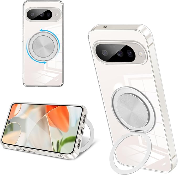 Google Pixel 10/Pixel 10 PRO ケース クリア シリコン MagSafe対応 リング付き 360 回転スタンド 縦横両対応 アジャスタブルスタンド マット仕上げ 耐衝撃 スマホ ケース グーグル ピクセルカバー 衝撃吸収ポケット内蔵 TPU 薄型軽量 ストラップホール付き Google Pixel 10/Pixel 10 PRO 保護カバー