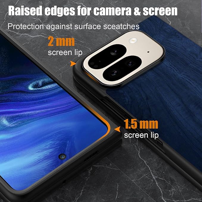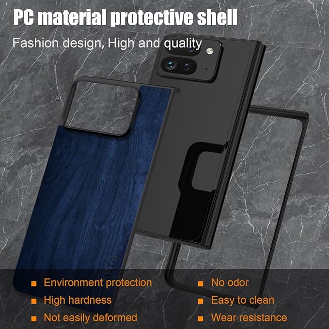 Aioria スマホケース Google Pixel 10 Pro Fold 5G 互換性ありウッドパターン スタイリッシュで丈夫な携帯電話ケース あふれる 木目柄 保護 (Dark Blue, For Pixel 10 Pro Fold)