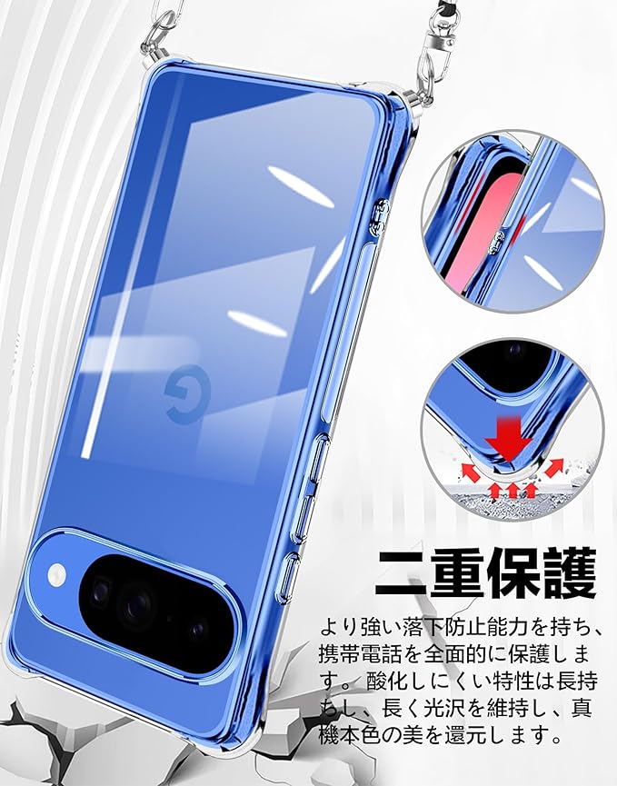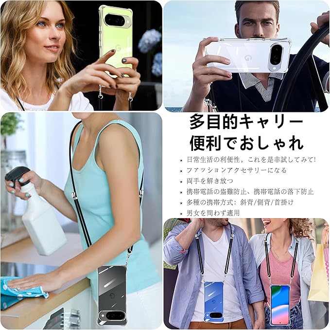 xiusiteli Pixel 10 / Pixel 10 Pro 用 ケース クリア ショルダー ピクセル10/10pro カバー ネック マホケースストラップ付き 肩掛け 斜めかけ 縄掛けケース 縄掛け TPU 薄型 軽量 取り外し可能 落下防止 柔軟で変形しない 【透明】