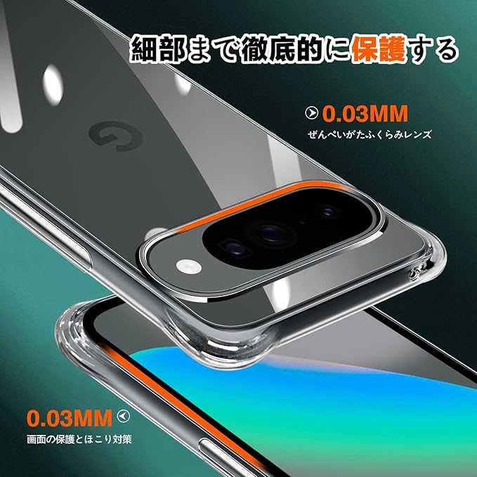 【高耐衝撃性・全面保護】カメラレンズの周りに段差をつけて擦り傷を防ぎます、平らな場所においても、液晶画面とカメラレンズに直接触れることがなく、ケース四隅のエアクッションデザインにより、ケースの四角を強化し、本体が落ちる場合に伝わる衝撃を吸収し、落下時の衝撃を最小限に抑えます、を全方位からしっかり守れます。