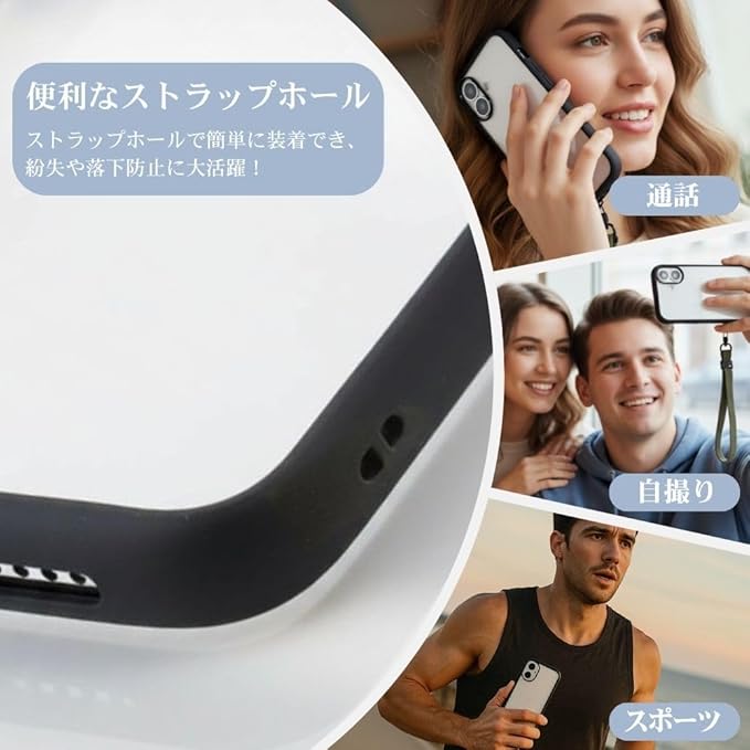 衝撃に強く、フィット感にも優れたハイブリッドケース。 背面は傷に強いポリカーボネート、側面には厚みのあるTPU素材を使用し、安心感のある使い心地を実現しました。 カメラまわりには高さのあるリング設計を採用し、レンズへの接触を防ぎます。 アクセサリーの取り付けに便利なストラップホール付き。