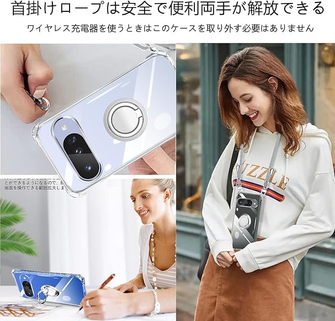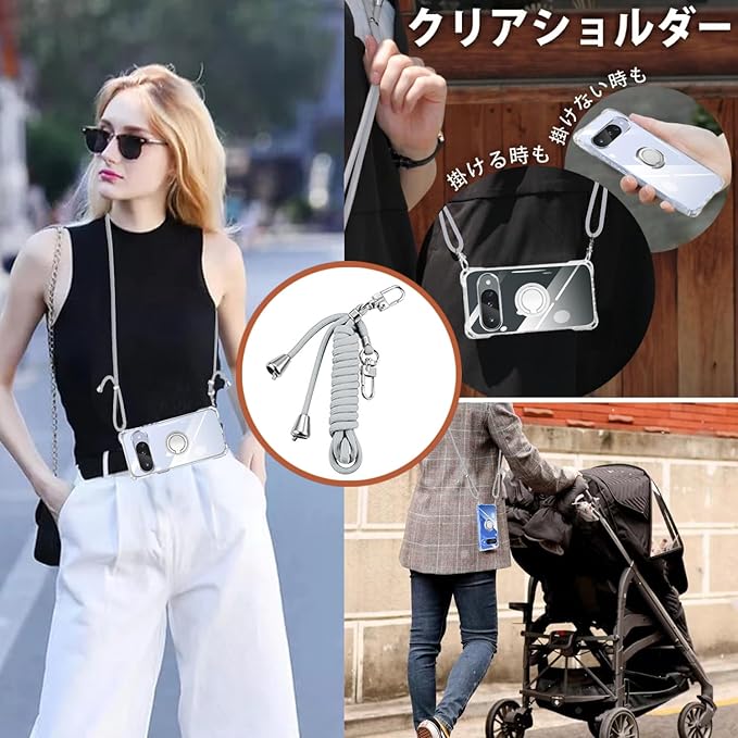 Google Pixel10 ケース クリア グーグルピクセル10 カバー ネック リング付き ショルダー 耐衝撃 Pixel 10 Proカバー 対応 サムスン ギャラクシー10/10proケース 肩掛け 斜めかけ 縄掛け 透明 TPU ストラップ付き 携帯 薄軽型 紐付き ネックストラップ ショルダー 肩掛け 縦/横2WAY 長さ調整可能 取り外し可能(縄掛け-グレー)