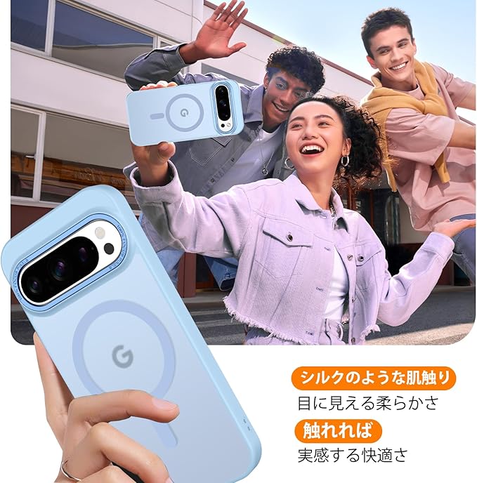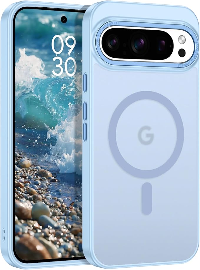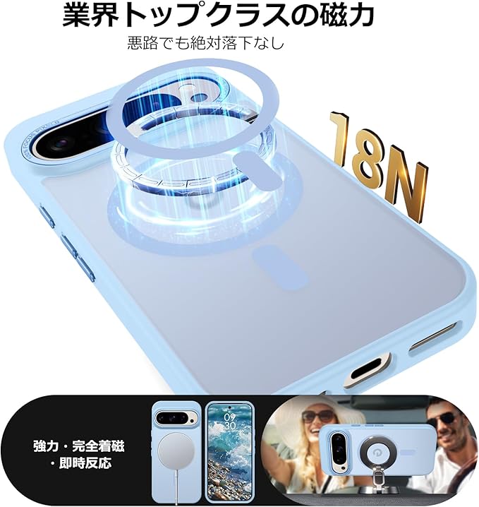 DUEDUE Google Pixel 10 Pro XL ケース マグネット搭載 ライトブルー ピクセル 10 Pro XL ケース 指紋防止 耐衝撃 一体型 薄型 TPUケース 車載ホルダー対応 ワイヤレス充電 全面保護