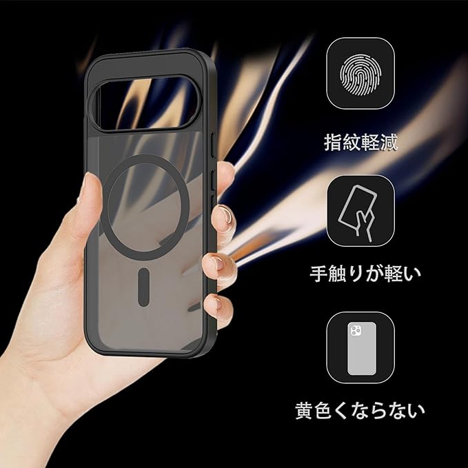 KPNS スマホケース に適合する Google Pixel10 / Pixel 10 Pro 用の ケース 米軍MIL規格 肌触りも良い 半透明 耐衝撃 超軽薄 指紋防止 黄変防止 保護 カバー(ブラック)