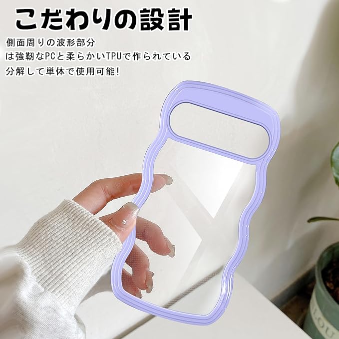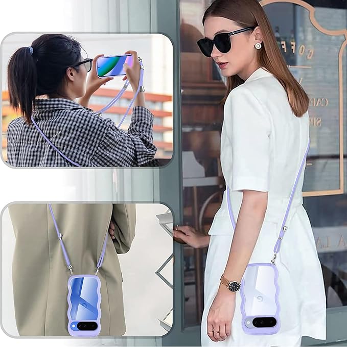 Google Pixel 10 用の ケース ショルダー ストラップ Pixel 10 Pro 用の カバー 波型 ウェーブ 斜めかけ 肩がけ 韓国 ピクセル10 スマホケース パープル