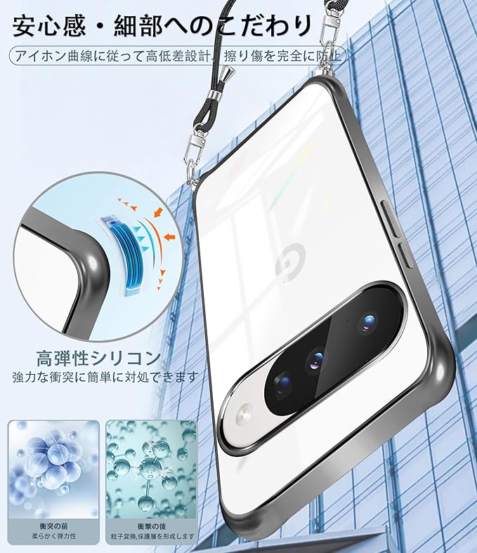 Google pixel 10/10 proケース にはとネックストラップが付属します、調節可能なストラップにより、サイド、またはフロントに持ち運べるときに完璧にあなたの隣に掛けることができます。 高透明率の高い特殊なTPU素材を持ち、黄ばみも付きにくい。薄くて丈夫で柔軟性が高く、程よいグリップ感があり、本体の持つスリムさをできる限り損なわないよう設計しています。着脱も簡単で、スマホ本体への擦り傷も心配無用です。衝突や引っかき傷から電話を保護できます。ストラップは、一般的なストラップの1.5倍の厚さで、ストラップを壊さない高品質の強化および厚みのあるナイロン素材で作られています。金具は高品質のステンレス鋼でできており、耐久性が高く錆びません。このアクセサリーはファッションだけでなく、通常のストラップよりも快適で実用的です。 作業、旅行、出張、ショピング、散歩、コンサート、パーティーに最適です。手を離しても、携帯電話を携帯できます。使いやすさ:柔らかいナイロンストラップで首を快適に保ち、ストレッチの長さを調整でき、ストラップを取り外して、電話ケースを単独で使用できます.