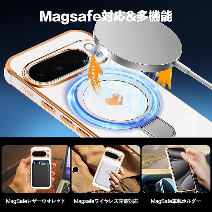 Google Pixel 10 / 10 Pro ケース MagSafe対応 リング スタンド機能 縦横両対応 ワイヤレス充電 レンズ保護 耐衝撃 携帯カバー グーグル ピクセル 10 pro カバー マグネット搭載 車載ホルダー マグセーフ対応 おしゃれ スリムケース ソフト シンプル(ホワイト)