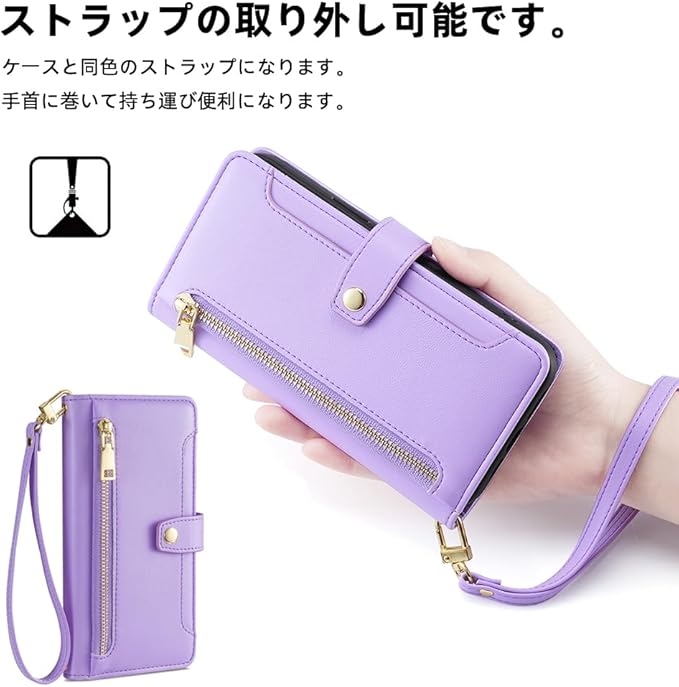 For Google Pixel 10 ケース 手帳型 Google Pixel 10 Pro ケース GooglePixel10/ 10Pro カバー【COKOVI】スマートフォンケース 手帳型 カードホルダー付き ショルダーストラップ 肩掛け 首掛け 耐衝撃 御洒落 女性 可愛い おしゃれ 高級PUレザー スタンド機能 サイドマグネット チャックポケット付き(紫色)