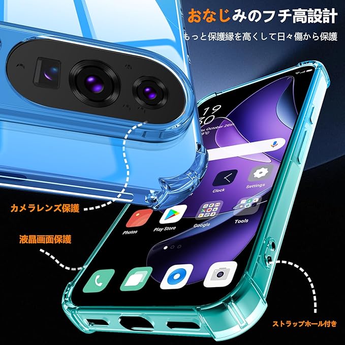 【対応機種】:対応 Google Pixel 10 Pro XL 専用デザインです(色:ブルー/緑);ご購入の前に、ごスマホの型番とサイズを確認してください