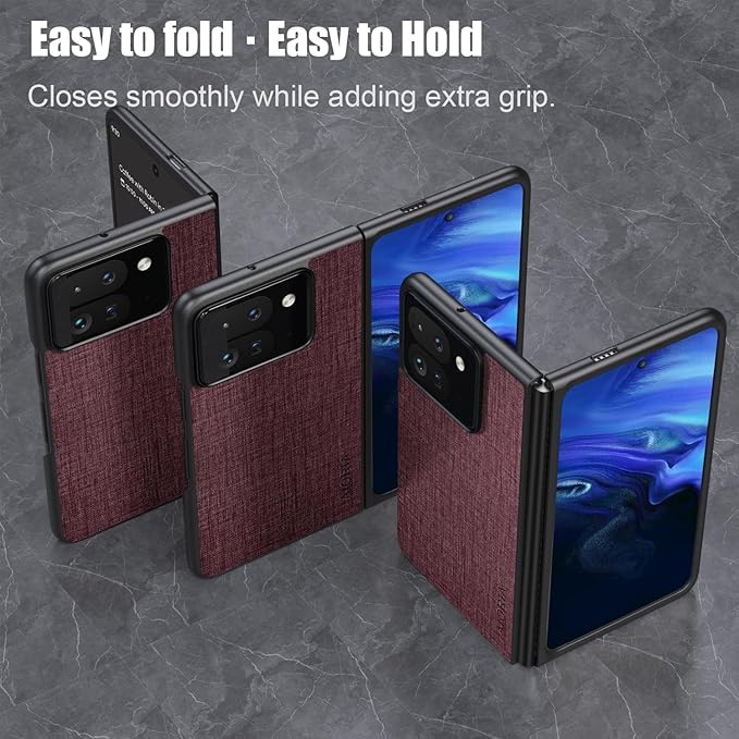 Aioria 互換性 ケース for Google Pixel 10 Pro Fold 5G 生地パターンレザー高級に保護純色スマホケース (Red, for Pixel 10 Pro Fold)