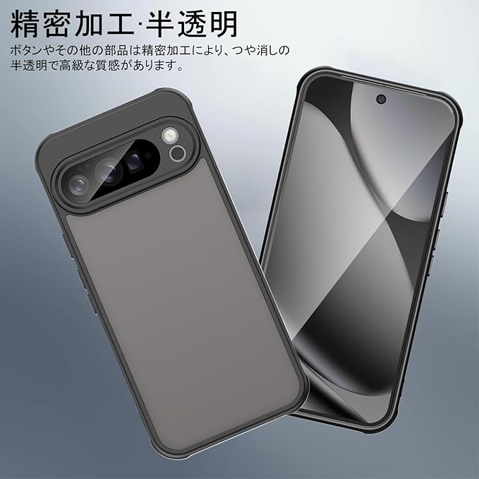 【TIFIYA】For Google Pixel 10 Pro XL 用 ケース 指紋防止 米軍MIL規格 PC+TPU素材 グーグルピクセル10 pro xl 対応 ケース 耐衝撃 2重構造 傷つけ防止 黄ばみなし 耐久性 ピクセル10 pro xl 保護カバー 半透明(ブラック)