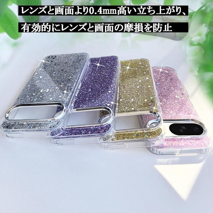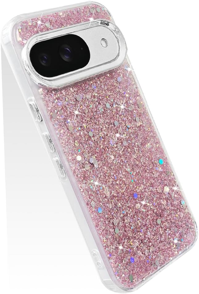 YUYIB スマホケース 対応 Google Pixel 10 Pro XLケース かわいい TPU キラキラ ブリンブリン フラッシュ おしゃれ 女性人気 美しい おもしろい キャラクター 傷防止背面 滑り止め 衝撃吸収 グルピクセル10 Pro XL 携帯電話カバー (ピンク)