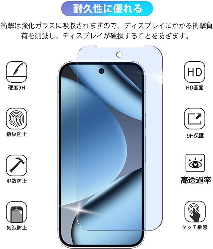 【対応機種】:2枚* Google Pixel 10 Pro XL/Google Pixel 9 Pro XL 用の ガラスフィルム ブルーライトカット