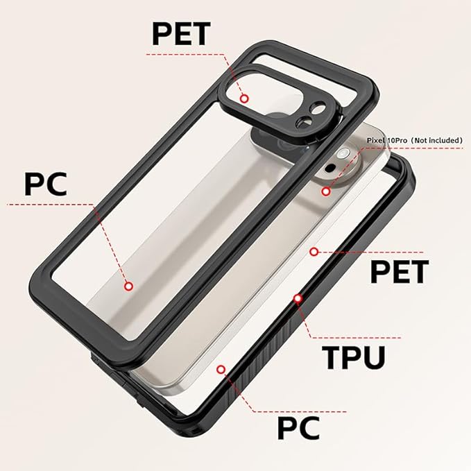 【Yikasina】 Google Pixel 10 Pro 防水ケース 6.3インチ IP68防水規格 防水 防雪 防塵 耐震 付け外し簡単 au softbank ピクセル10プロ ケース ストラップホール付き ワイヤレス充電対応