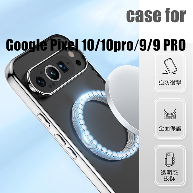 GYOKUYU [透明ケース]for Google Pixel 10/10 pro/9/Google Pixel 9 Pro ワイアレス充電対応 携帯ケース MagSafe対応 グーグル ピクセル10 黄変防止 操作便利 超薄型 用カバー(シルバー)