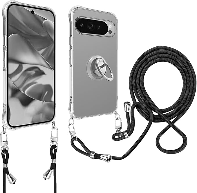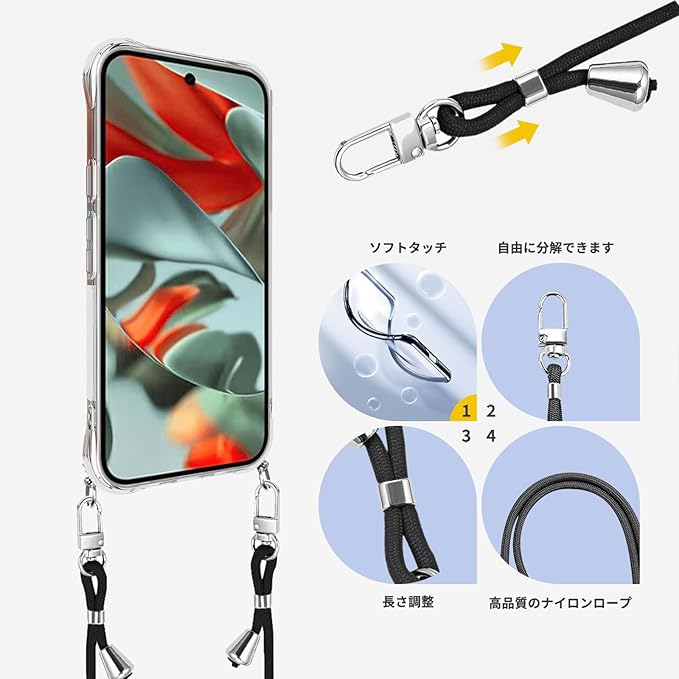 For Google Pixel 10 Pro XL 用 ケース カバー 軽量 TPU ソフト クリア 肩掛け 首かけ 調節可能 紐付き 取り外し可能 【NOUKAJU】For Google Pixel 10 Pro XL スマホケース ストラップ付き ショルダーストラップ 長さ調整可能 なワイヤレス充電邪魔ない