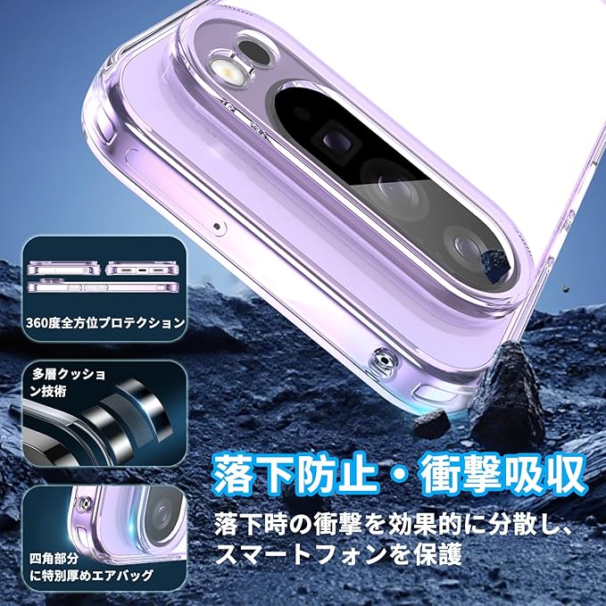 [5D全透明バックプレート]TPU透明ケースは99%の透過率を実現し、Google Pixel 10 Pro XLの美しいボディデザインを忠実に再現。航空機級の黄変防止素材を採用し、特殊コーティング処理を施しているため、紫外線・汗・経年劣化による変色や黄ばみを防止。長期間使用しても透明で美しい状態を保ちます。