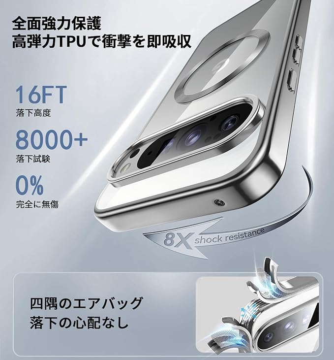 【高級感のある金属光沢・軽量デザイン】このgoogle pixel 10/10 プロ カバーは、柔らかなTPUフレームと透明バックパネルが特徴です。フレームは4層真空メッキ加工技術と超微細なレーザー加工技術によって設計、軽量でぴったりフィットし、スマホ本体の美学を完璧に表現しています。繊細な光沢が光と共に変化し、高級感あふれる質感。このスマホケース google pixel 10/10 Proのエッジ、カメラレンズ、マグネットリングはすべてメタリックな光沢仕上げで、他にはない個性を放ちます。