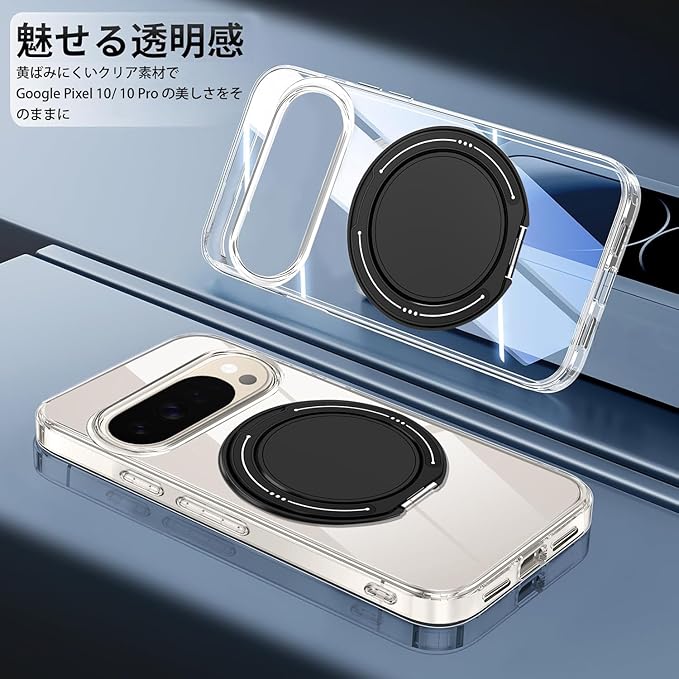 対応 Google Pixel 10/ Google Pixel 10 Pro ケースリング 360 回転スタンド機能 縦横両対応 Google ピクセル 10 / 10プロ 透明 TPU 耐衝撃 指紋防止 車載ホルダー対応 防塵 一体型 人気 携帯カバー(クリア)