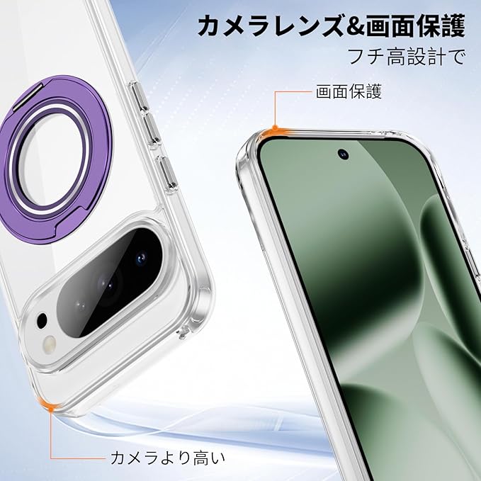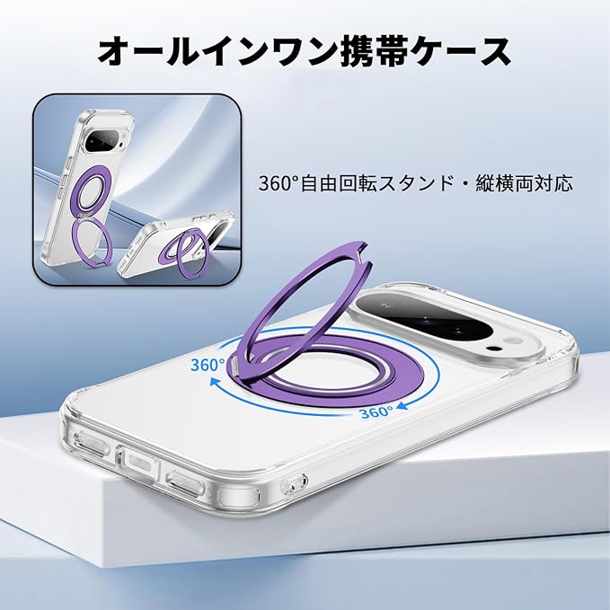 Jajaful 対応 Google Pixel 10/10 Pro 用 ケース クリア Magsafe対応 360 回転スタンド 車載ホルダー 対応 指紋防止 黄変防止 耐衝撃 米軍MIL規格 SGS認証 ピクセル10カバー ピクセル10Pro 携帯ケース ぐーくるぴくせる10 携帯カバー ワイヤレス充電対応 スマホケース ストラップ穴付き 軽量 透明 PC+TPU パープル