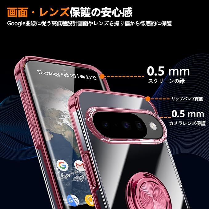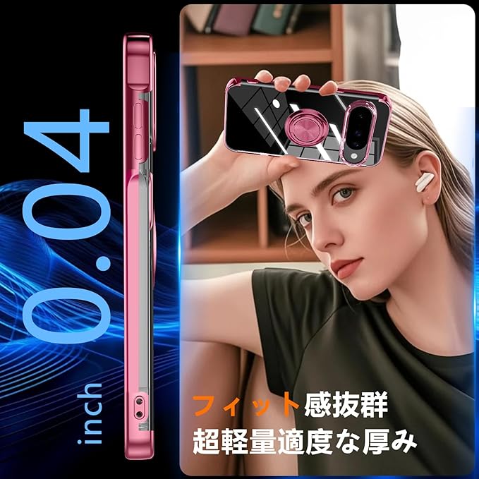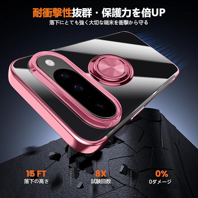 QOUNVYW 対応 Google Pixel 10 用 ケース Pixel 10 Pro 用 ケース リング付き クリア 耐衝撃 スタンド機能 透明 TPU 車載ホルダー対応 落下防止 防塵 薄型 軽量 一体型 変形防止 保護カバー ピクセル 10/ピクセル 10 Pro 用 カバー ピンク W-YXZH-86-05