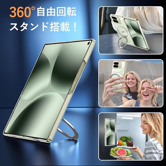 Google Pixel 10 Pro Fold ケース クリア 多機能360度回転スタンド マグネット搭載 角度調整 縦横両対応 グーグル ピクセル10 プロ フォールド カバー リング付き ケース 耐衝撃 TPU スマホケース 多機能 透明 軽量 薄型【クリア】