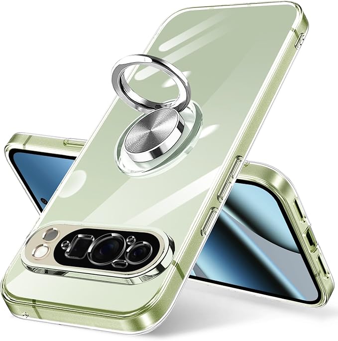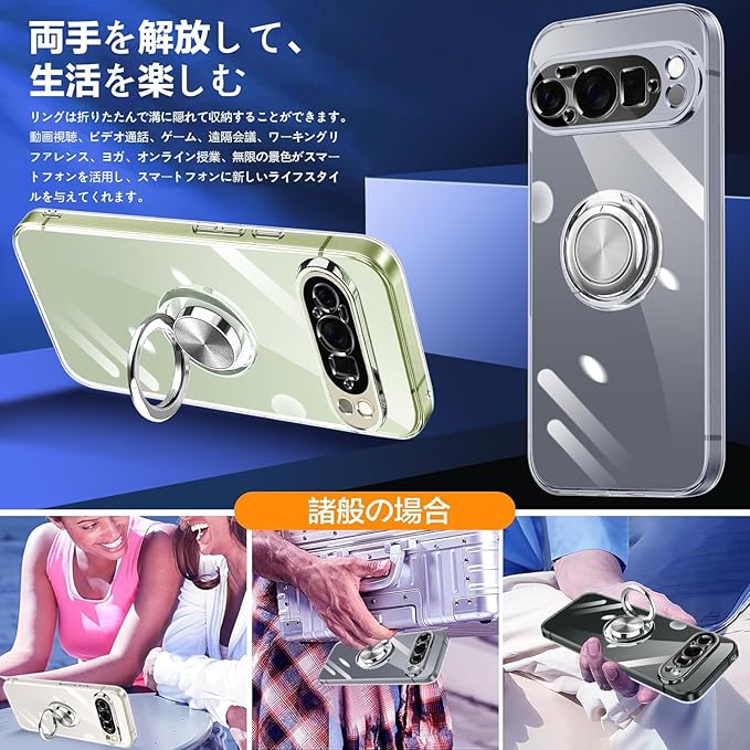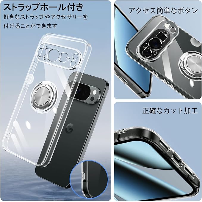 Google Pixel 10 Pro XL ケース リング付き クリア Pixel 10Pro XL ケース 耐衝撃 スタンド機能 ストラップホール付き 軽量 スリム ソフト TPU ピクセル 10pro xl カバー 透明 TPU 擦り傷防止 落下防止 (クリア)