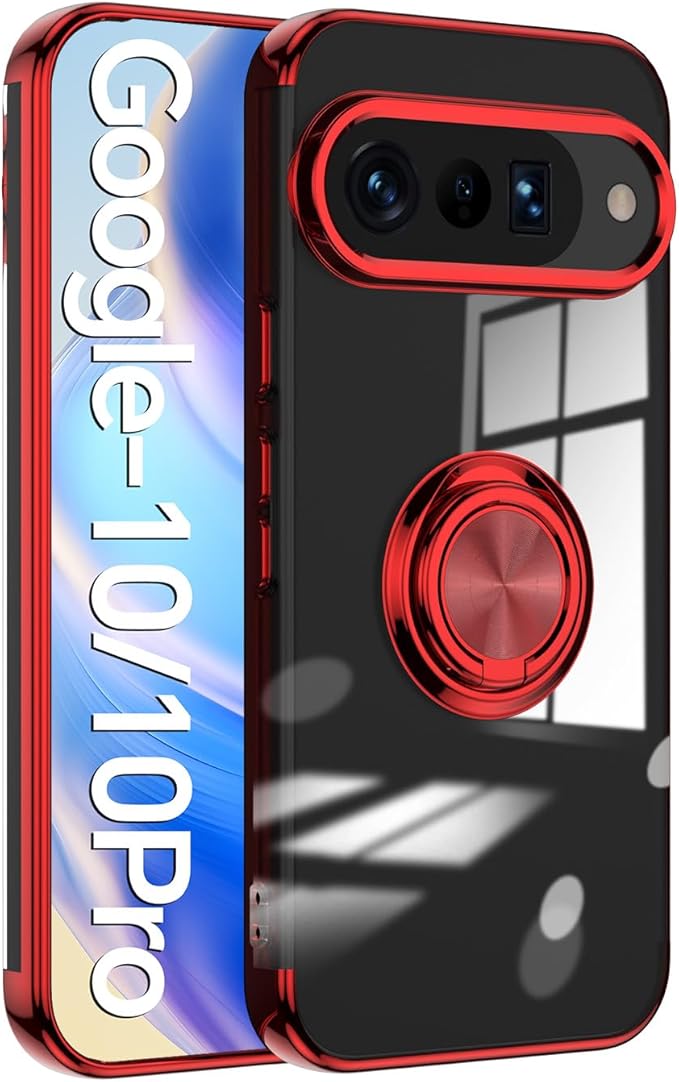 【Geshh】Pixel 10/10 Pro ケース(レッド)クリア 携帯ケースマグネット リング付き 色落ちしにくいめっき処理 耐衝撃 軽量 薄型 対応 グーグル ピクセル10 Pixel 10/10 Pro RED