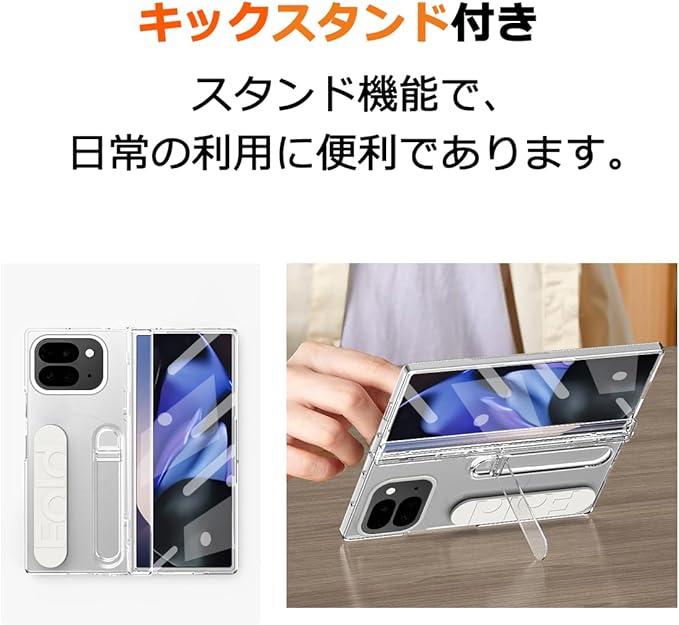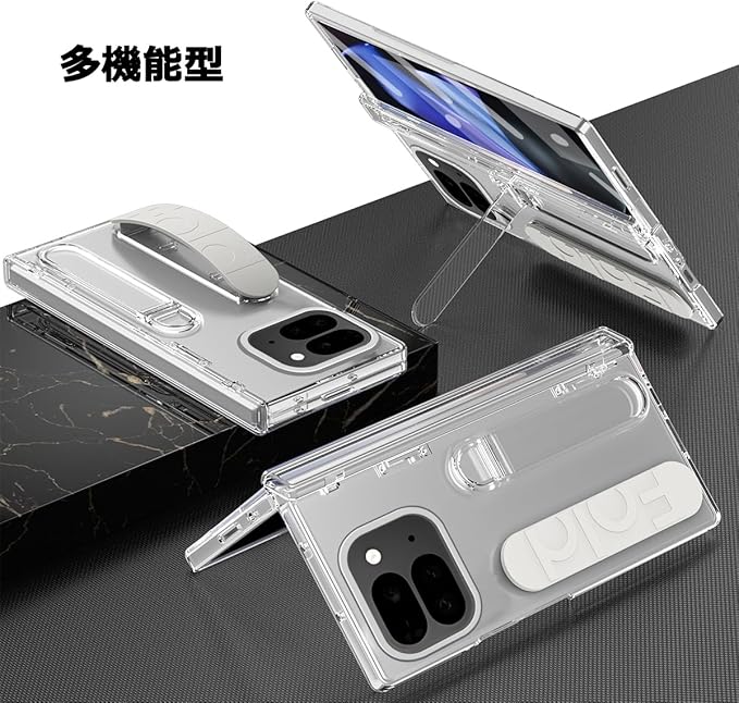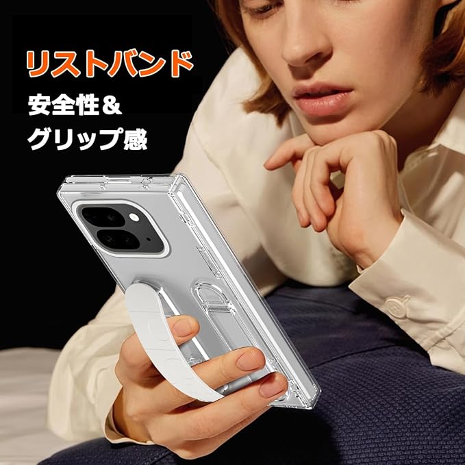 NINKI適応 Google Pixel 10 Pro Fold 2025用 ケース ハンドバンド フィルム一体型 PC製 ストラップ 画面保護 耐衝撃 キックスタンド付き 手触り良き グーグルピクセル 10プロ フォールド スマホケース (クリア)