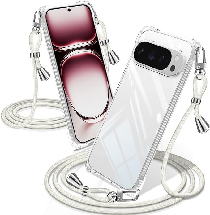 Google Pixel 10 / Google Pixel 10 Pro ケース クリア ショルダー 耐衝撃 ピクセル10 / ピクセル10 Pro カバー スマホケース 透明 織りストラップ付き 肩がけ 首掛け 紐付き 縄掛け 斜めがけ ファッションデザイン TPUスマホ 柔軟 軽 薄 (ホワイト)
