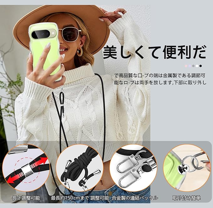 Google Pixel 10/Google Pixel 10 Pro ケース クリア ショルダー 耐衝撃 ピクセル10/10pro スマホケース カバー 薄型 軽量 首かけ 肩掛け 縄掛けケース ストラップ付き 取り外し可能 長さ調整可能 ワイヤレス充電対応 透明(クリア)