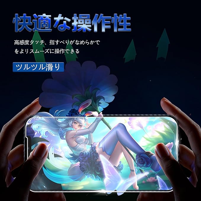 【指紋防止&超スムーズ操作 - ナノ撥油コーティング】:特殊疎油加工で汗・油・化粧品などの付着を防止、サッと拭くだけで清潔を維持.タッチ感度を損なわず、指紋認証や画面操作もストレスフリー、ゲーム操作やスクロールが驚くほど滑らかに