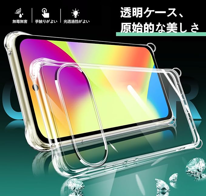 【高耐衝撃性・全面保護】カメラレンズの周りに段差をつけて擦り傷を防ぎます、平らな場所においても、液晶画面とカメラレンズに直接触れることがなく、ケース四隅のエアクッションデザインにより、ケースの四角を強化し、本体が落ちる場合に伝わる衝撃を吸収し、落下時の衝撃を最小限に抑えます、を全方位からしっかり守れます。