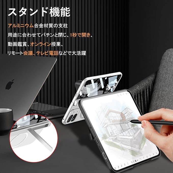 【一体化のサブ画面保護、傷一つなし!】サブ画面には高感度、高透過率のガラスフィルムが一体化しており、画面の色彩を損なわずに再現、日常使用によるキズや擦れからしっかり保護。サブスクリーンを新品同様の美しさで長くキープでき、わざわざ別売りの保護フィルムを探す手間も不要です。サブ画面カバーとヒンジ部分は強力なマグネットでしっかりと接続されており、使用中は絶対に外れず、ケースの取り外しも簡単に行えます。