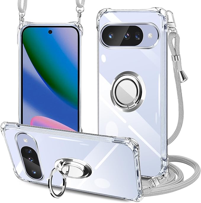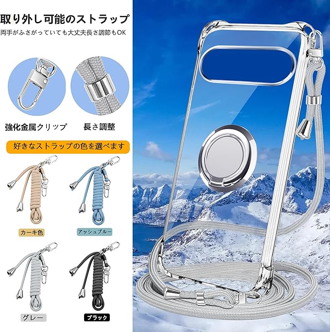 Google Pixel10 ケース クリア グーグルピクセル10 カバー ネック リング付き ショルダー 耐衝撃 Pixel 10 Proカバー 対応 サムスン ギャラクシー10/10proケース 肩掛け 斜めかけ 縄掛け 透明 TPU ストラップ付き 携帯 薄軽型 紐付き ネックストラップ ショルダー 肩掛け 縦/横2WAY 長さ調整可能 取り外し可能(縄掛け-グレー)