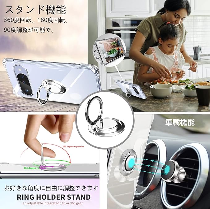 【リング付き機能】ケースを横置きにするとスタンド機能になり、持たず動画鑑賞などを楽しむことができます。リングは360度回転可能、180角度調節可能。一指着る式で、指がリングに通り抜け、片手で携帯を操作でき、落下防止します。ケースは柔らかいTPU素材を使用し、本体との擦れを防げ、ケースの着脱も簡単にできます。落下時には衝撃力を分散し、大事なデバイスを全面保護します。柔らかいナイロンストラップで首を快適に保ち、ストレッチの長さを調整でき、ストラップを取り外して、電話ケースを単独で使用できます。