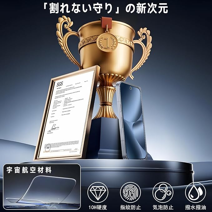 【高品質素材製・飛散防止】現在市場では最も硬い10Hの表面硬度。一般的なガラス保護フィルムよりも耐久性に優れたハードコーティング技術により、10Hの硬度を実現、万が一の破損時も、飛散防止加工によって破片が飛び散ることがなく安全です。