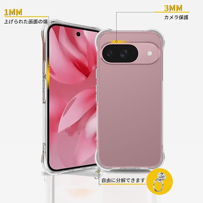 For Google Pixel 10 / 10 Pro 用 ケース カバー 軽量 TPU ソフト クリア 肩掛け 首かけ 調節可能 紐付き 取り外し可能 【NOUKAJU】For Google Pixel 10 / 10 Pro スマホケース ストラップ付き ショルダーストラップ 長さ調整可能 なワイヤレス充電邪魔ない