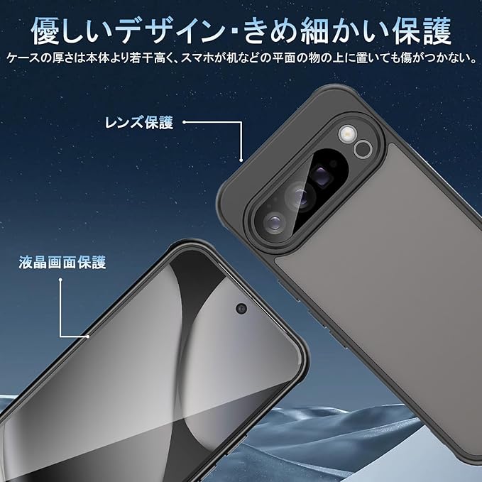 【レンズとスクリーン保護】ケースの厚さは本体より若干高く、スマホが机などの平面の物の上に置いても傷がつかない。pixel 10 pro xlが落下した際に液晶画面やレンズに傷が付かないようにする。